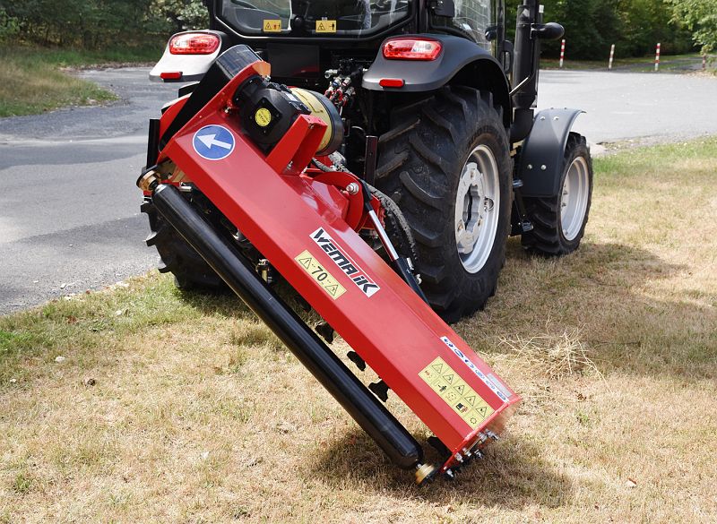 Das freilaufende Getriebe und die Arbeitsbreite von 145cm machen diesen Mulcher ideal für den Einsatz an Kleintraktoren ab 25 PS. Der Seitenmulcher lässt sich seitlich um 1,20 Meter verschwenken und in der Neigung zwischen -55° und 90° einstellen: