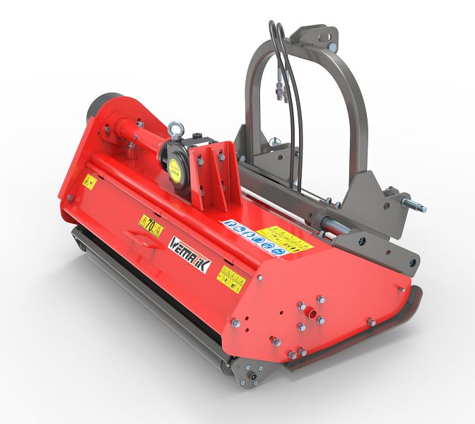 Der Hobart 175 Mulchmäher zeichnet sich besonders durch seine robuste Mulchwelle Ø 108mm und durch die große Nachlaufrolle Ø 102mm mit Abstreifer aus. Außerdem ist der Schlegelmulcher Hobart 175 mit hydraulischen Seitenschub ausgestattet. Dadurch kann der Mulcher um bis zu 350 mm seitlich verschoben werden und es wird auch entsprechend neben dem Traktor noch gemäht (vorteilhaft beim Mähen unter Zäunen). Der Dreipunkt Anbau erfolgt mit Kat. 1 oder Kat. 2, somit kann dieser Wiesenmäher hinter vielen Schleppern verwendet werden.