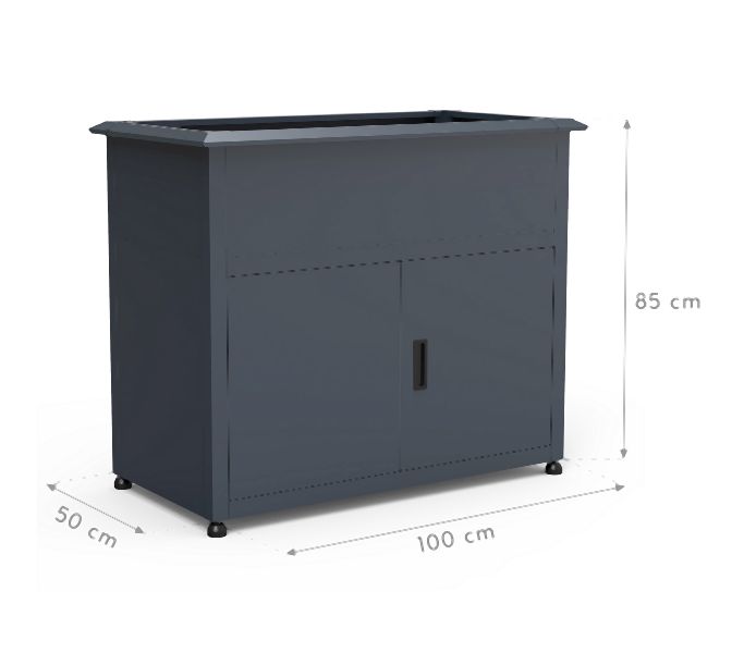 Westmann Metall Hochbeet Plexa mit Stauraum & Schneckenkante Anthrazit, 50x100x85cm, WMHPS-S1085E
